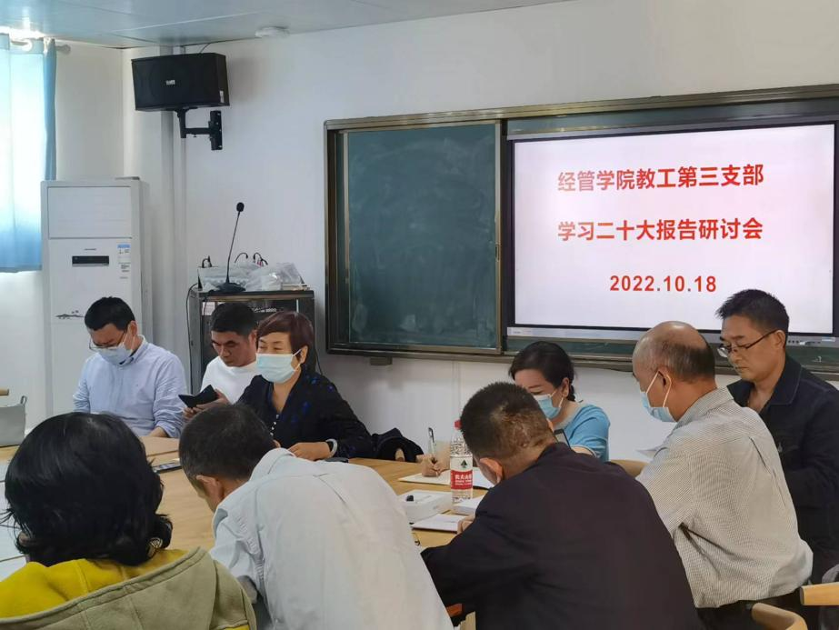 10月18日下午,beats365官方网站国贸金融教研室、行政财会教研室、旅游人力教研室教师围绕党的二十大报告,分享个人学习心得。会上,老师们纷纷畅谈学习习近平总书记重要讲话精神的体会和感悟,表示要牢记为党育人、为国育才使命,紧紧围绕立德树人根本任务,着力在创新教学形式、提高课堂效果等方面下功夫,为加快建设教育强国、科技强国、人才强国贡献力量。