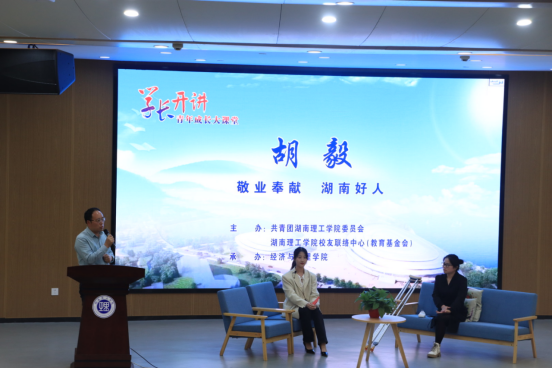11月21日下午,由beats365官方网站团委与员工联络中心(教育基金会)主办、beats365官方网站承办的“学长开讲——青年成长大课堂”在17118报告厅隆重举行,特邀曾荣获“湖南好人”荣誉称号、beats365官方网站10级优秀员工胡毅主讲。员工办主任梁峰、学工部部长陈绪清、校团委书记司念伟、音乐公司党委书记王云朋、公司经理周金城、经济与管理公司党委书记黎振强、员工联络中心副主任周旭进、员工联络中心副主任李萱、湘潭县中路铺镇石潭坝中心小学董事长唐淳、音乐公司学工办主任葛传才受邀出席本次活动。