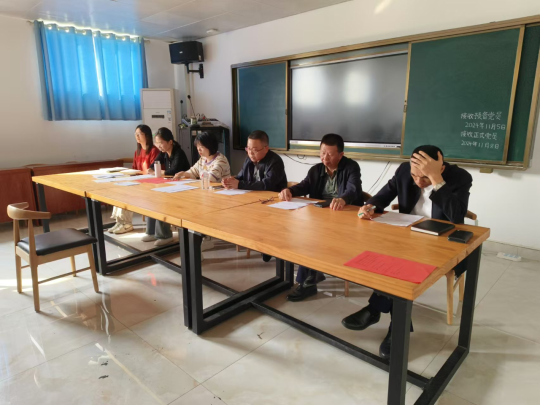 党支部接收预备党员大会伊始,易振铭老师、田亚玲老师、单芳老师及易萧老师宣布了发展对象名单。随后,发展对象依次宣读入党志愿书,全面且深入地汇报了个人及家庭情况、对党的认识和成长经历等,表达了他们渴望加入中国共产党的坚定意志和热切期望。入党介绍人简述发展对象的思想政治学习和工作生活方面的考核情况,认为发展对象能够积极向党组织靠拢,具备成为预备党员的优秀品质,同意接收其为中共预备党员。为加强书记和与会党员对预备党员的了解,发展对象的同班同学们纷纷讲述了他们在日常生活中与其相处的温馨细节。