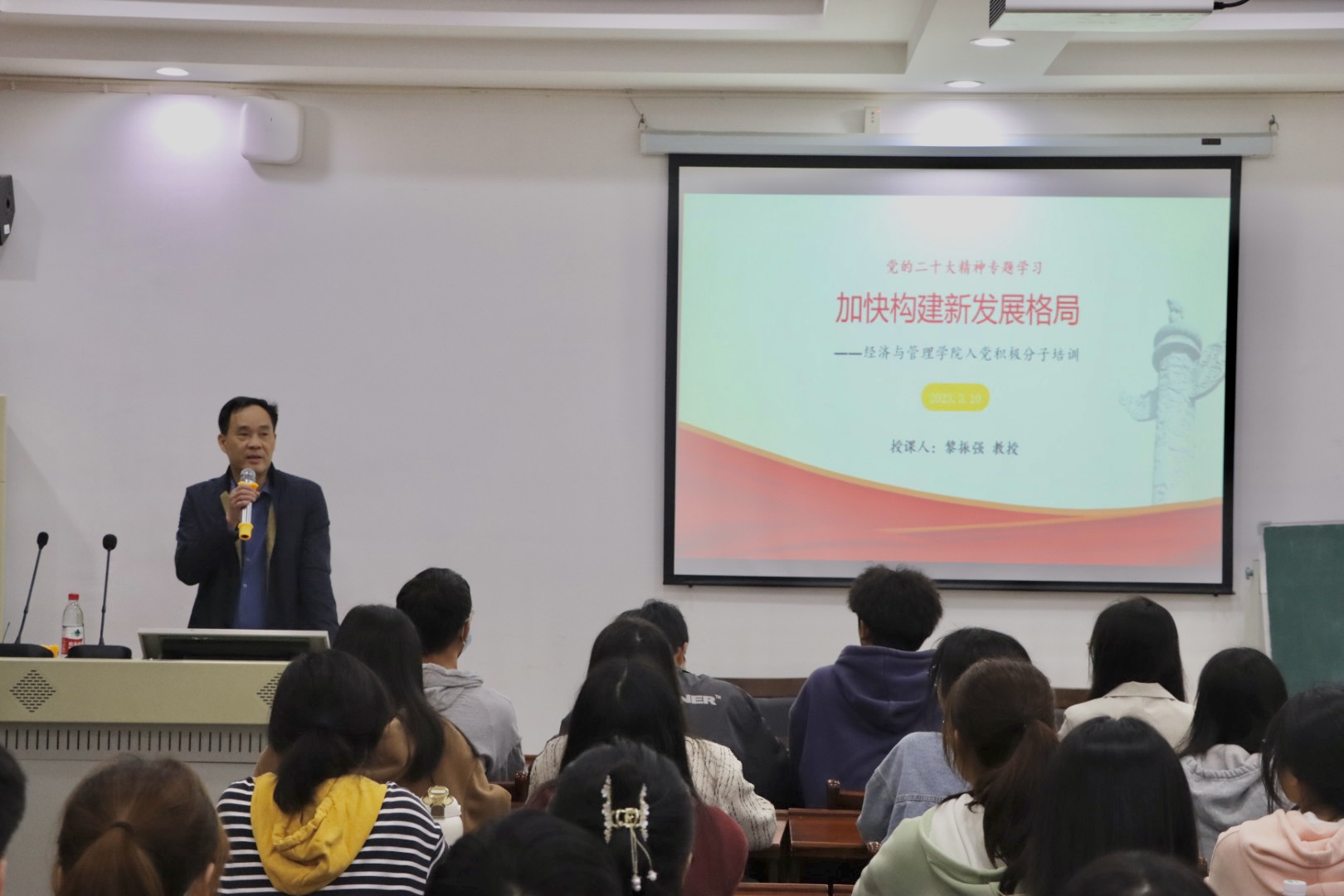 会上,黎书记对新发展格局的本质、内在结构等方面进行了详细介绍,并从国内国际的视角深入解读新发展格局的现状及发展前景。黎书记表示,我们要深入贯彻学习习近平新时代中国特色社会主义思想,笃定高质量发展不动摇。他强调,经管学子要深入理解、准确把握其科学内涵和实践新发展理念的具体要求,把思想和行动统一到新发展理念上来,努力提高统筹贯彻新发展理念的能力和水平。