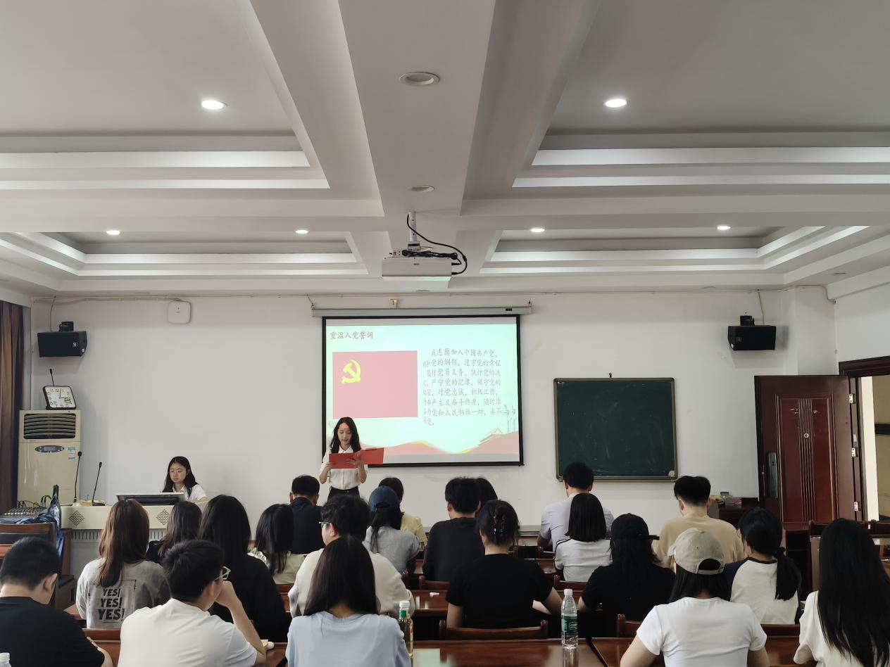会议伊始,全体参会人员肃立,奏唱国歌。随后,在凌芝同学的带领下,全体党员同志面向党旗紧握右拳,重温入党誓词。“我志愿加入中国共产党!”铿锵有力的声音穿透穹顶,既是对初心的回溯,更昭示着新时代青年党员“强国有我”的使命担当。