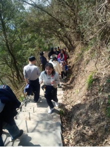 此次活动中,公司教师们一起徒步岳阳县麻布大山和鹰山,山路边还开着五颜六色的花朵,有红的、黄的、蓝的,非常漂亮。清爽的微风吹来,花儿在向我们招手,松树张开着双臂迎接我们,树上的小鸟欢呼跳跃,用那美妙动听的歌声欢迎老师们的到来。山路崎岖而陡峭,一路攀爬累得老师们满头大汗,气喘吁吁,两腿发酸,没有一个人喊累,倒是心情十分愉悦。最后一部分体力好的老师到达了山顶,体验到了“会当临绝顶,一览众山小”的美感。下山后老师们又去“半日闲”葡萄园,体验劳动摘菜的乐趣,充满了温馨、愉快。教师们相互帮助,始终发扬着团结协作、奋发向上、勇攀高峰的精神风貌。