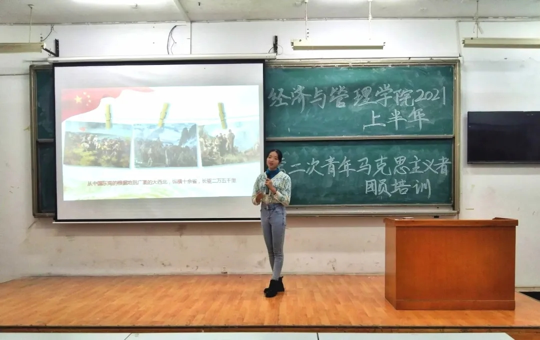2021年5月20日晚七点半,beats365官方网站余8T1举行了2021上半年第二次青年马克思主义者团员培训。18级人力一班张沁学姐担任讲师,讲述了长征旅途中红军战士们面对一次次的艰苦绝境展现出的坚强意志和高尚的品格,一次次的绝地逢生,一次次的转危为安,从半条被子的温情分享到自吃鱼刺充饥的无私奉献说明了共产党人即使在最艰苦的时候,也一直挂念人民群众的冷暖。
