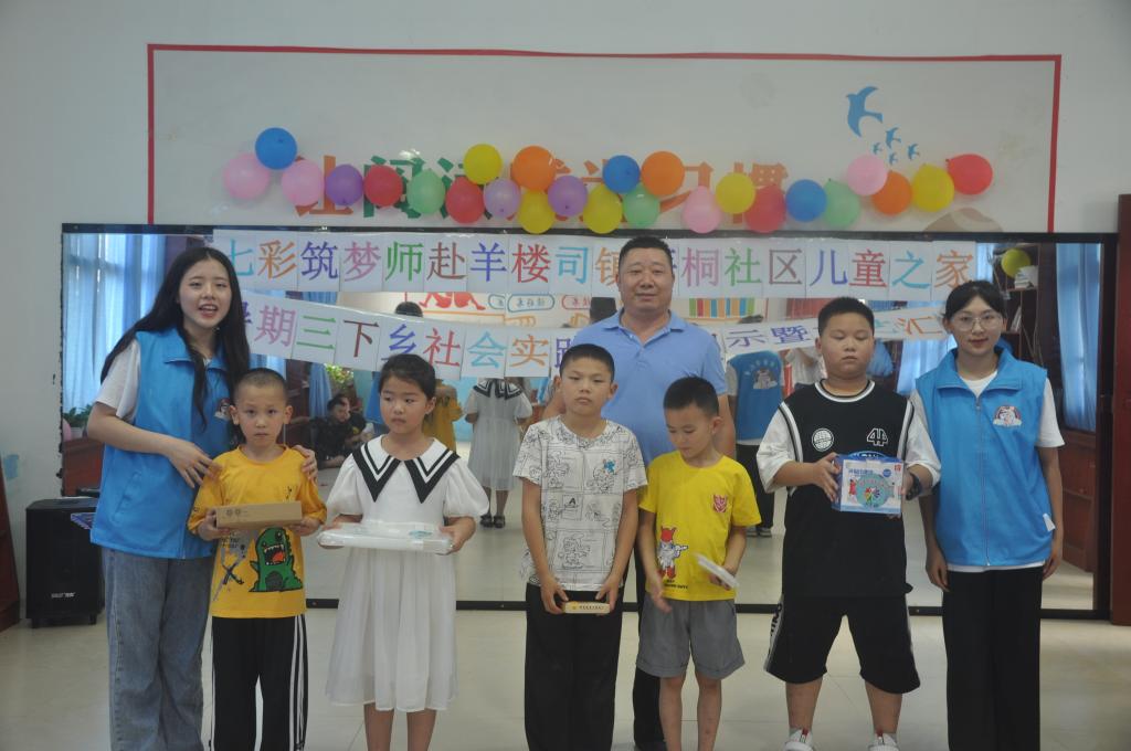 “在此次“三下乡”实践过程中,我们面临了很多挑战,住宿条件及硬件设施的简陋,和留守儿童的磨合过程都曾让我们心生畏惧,但是想到孩子们的笑脸与成长,我们最终一一克服了。”“七彩筑梦师”团队负责人都宇婷在活动现场表达了自己的切身体会。梧桐社区留守儿童之家董事长卢幼军对实践队员的努力与付出表示感谢,并希望所有老员工与小员工在社会的关爱下共同茁壮成长。