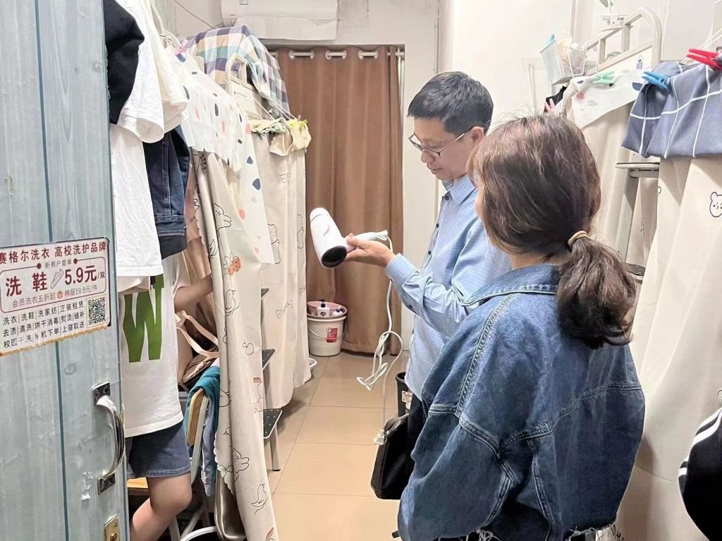走访期间,周经理对毕业生们的论文情况格外关切,并特别询问毕业生的就业情况,提出了对毕业生未来选择的建议,为毕业生指明了毕业后的道路。黎书记特别提醒同学们近期流感高发,注意开窗通风,帮助同学们树立宿舍卫生意识,改善宿舍卫生环境,同时向同学们强调了使用违规电器可能造成的安全隐患,希望同学们共同营造和谐的寝室氛围。