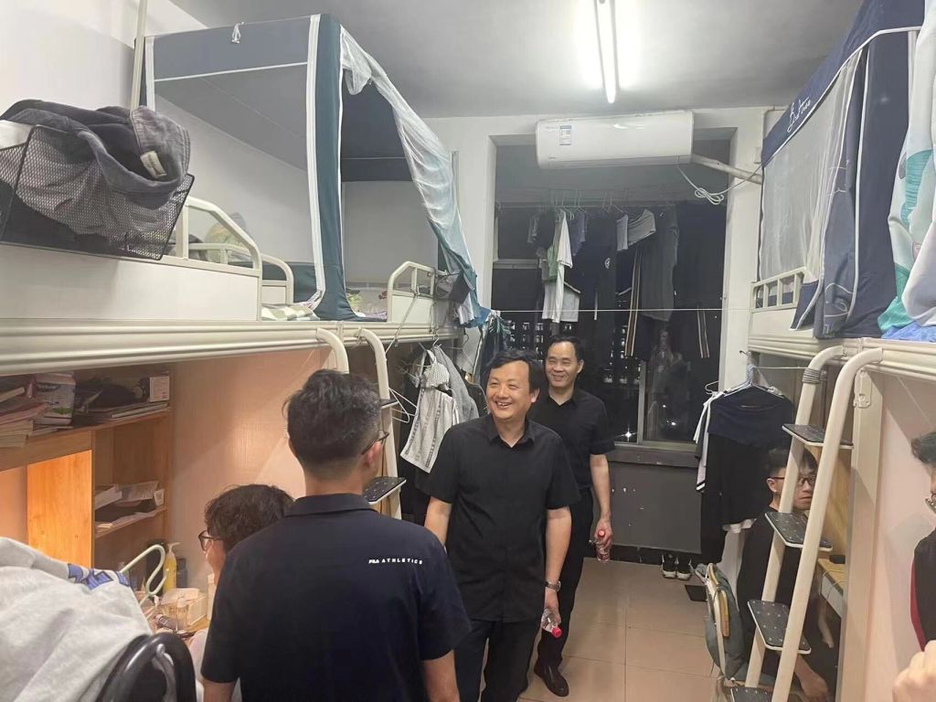 为进一步提高员工的寝室安全意识,了解员工五一假期返校情况以及返校后的思想、学习、生活状态,排查寝室存在的安全隐患问题,做好员工宿舍的安全管理,5月5日晚9点半,公司党委学工部副部长毛伟、公司经理周金城、公司党委书记黎振强带领全体班主任、辅导员走访员工寝室。