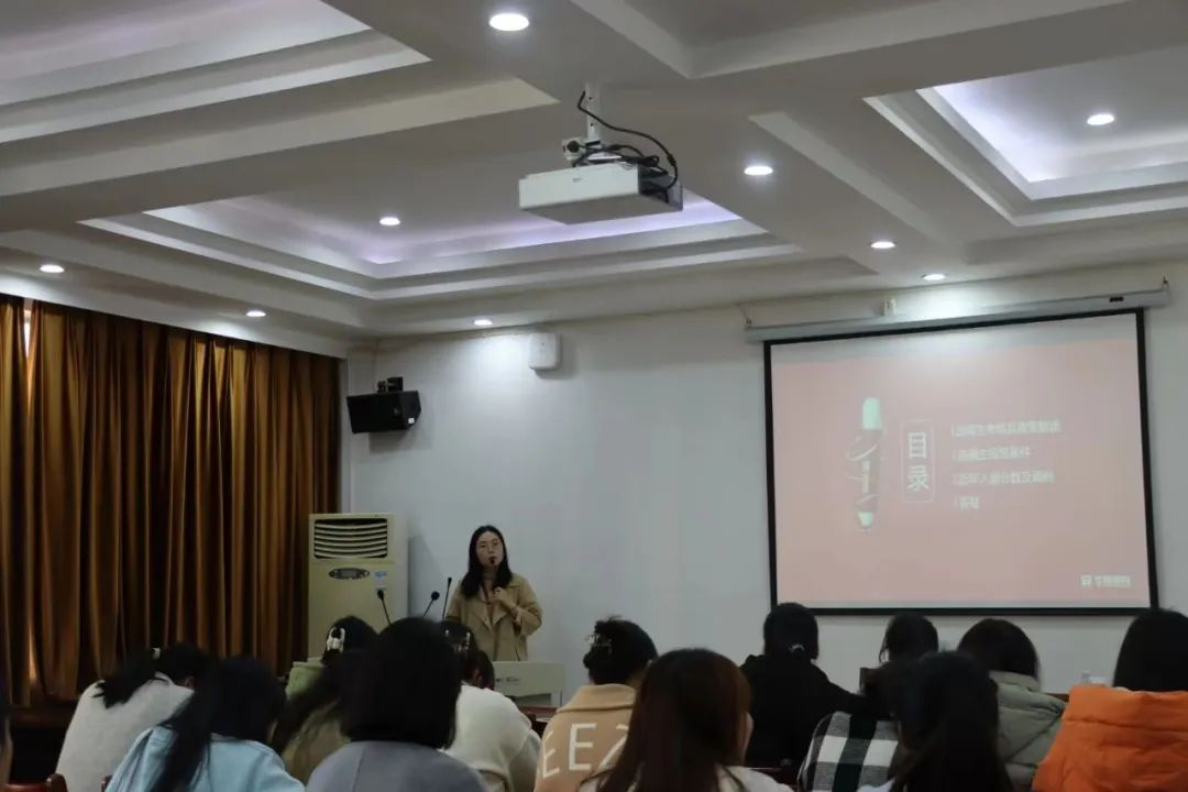华图教育老师以高度的政治责任感做好宣传动员和思想教育工作,从多个方面展开本次讲授,首先她简单地向同学们解释了何为选调生,为何大学面向老员工开展选调生动员大会。从选调对象、选调条件、选调程序三个层面分析。老师表示:“选调生动员大会既是一项重要而严肃的政治任务,又是公司就业工作的重要项目。”她将选调工作的重要意义、政策要求等向每一位毕业生宣讲到位,动员符合条件的优秀毕业生积极报名。
