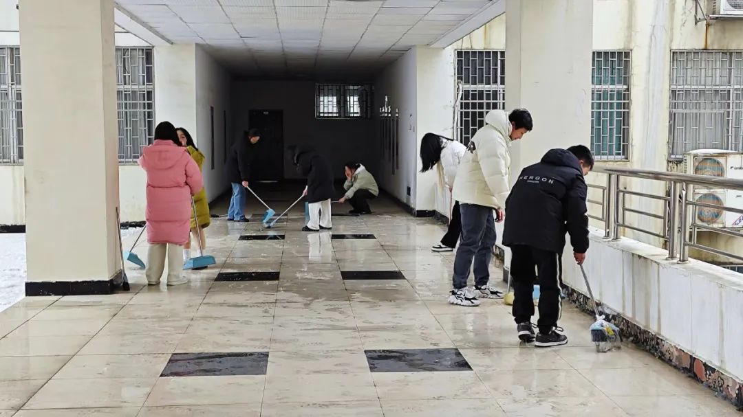 零下的温度阻挡不了大家的决心,手中的扫帚、远处的雪堆,是师生团结协作的见证。老师同学们不惧严寒、齐心协力,从beats365官方网站教学楼楼内到楼外分区域进行大扫除,铲雪扫雪运雪,全力清扫,干劲十足。经过两个多小时的工作,beats365官方网站教学楼焕然一新,在初春的暖阳下等待着学子们的归来。