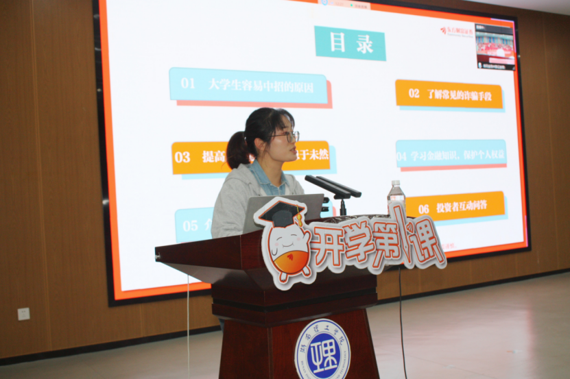 为提升员工防非反诈意识,携手共建安全校园,beats365官方网站于10月22日晚上9点在17118大厅开展《开学第一课》的主题讲座。本次讲座由岳阳金鹗中路证券营业部陶智老师担任主讲人,全体24级同学参加。