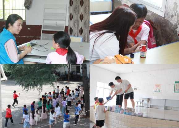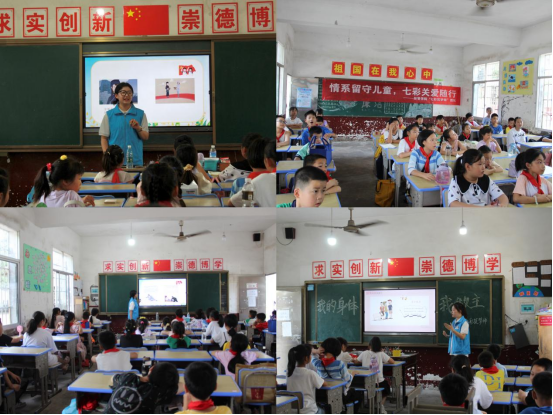 7月7日,“七彩筑梦师”留守儿童帮扶团为石潭坝中心小学员工开展了全科辅导作业、“湖湘红色”大课堂、“安全自护”课堂和“心灵关爱”课堂等活动。团队成员们了解了小朋友们的学习情况、心理状况、生活需求等,耐心倾听他们的心声和遇到的困难,鼓励他们积极面对困难。“湖湘红色”大课堂通过巧妙结合视频、素描画、剪纸画等形式为留守儿童普及红色知识,增强孩子们对湖湘红色文化的了解,厚植家国情怀;队员们以“我的身体我做主”为主题开展的“安全自护”课堂,采用知识问答等多种形式,帮助孩子们认识自己的身体,学会保护自己;“心灵关爱”课堂通过“相亲相爱一家人”“五人四纸”“你动我猜”等心理团辅活动教授孩子们心理知识,缓解和矫正留守儿童因亲子关系、校园霸凌等引起的消极情绪与不良行为。