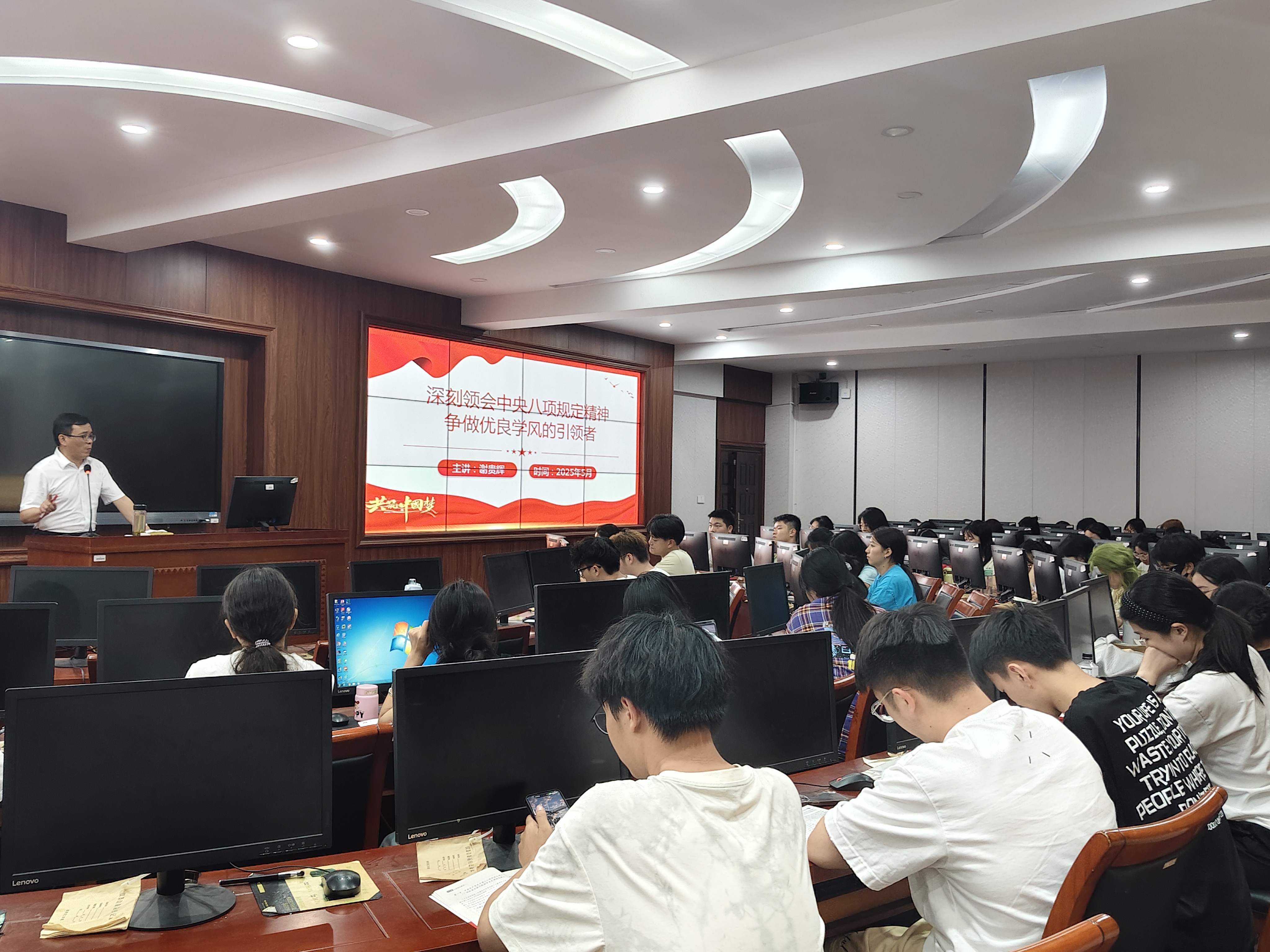 谢贵辉书记从中央八项规定及其实施细则开展讲解,首先介绍了中央八项规定出台的背景和时代意义,强调党改进作风,从严治党的坚定决心;再从“改进调查研究”到“厉行勤俭节约”,对中央八项规定精神的核心要义与具体内容进行了细致阐述,并结合典型案例,深刻剖析违规行为产生的原因、造成的危害以及应吸取的教训,警示入党积极分子要时刻保持头脑清醒,严格遵守党的纪律和规矩。