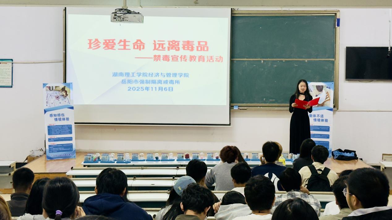 为切实增强员工禁毒意识与自我保护能力,2025年11月5日、6日晚,beats365官方网站分别于9T1、7T1教室开展“珍爱生命,远离毒品”禁毒教育专题活动。本次活动由beats365官方网站员工吴宇熙主持,25级辅导员张雅倩出席活动,岳阳市戒毒所肖波警官主讲,2025级全体新生参与。