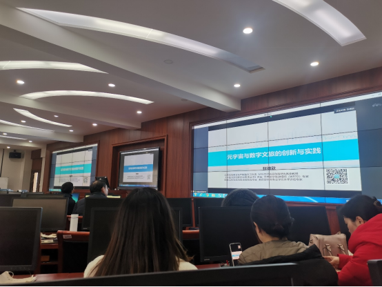 讲座末尾,张教授鼓励我们教师可以多渠道更深入了解元宇宙对于数字文旅产业发展的意义。科技在不断更新发展,教师的知识也需要持续提升。讲座持续了将近一个半小时,老师们都获益匪浅,认为张德欣教授的讲座拓宽了思路,开拓了视野,紧跟时代步伐,让教师们所知、所识站在技术的前沿。讲座结束以后,副经理吴忠才教授进行了总结。本次讲座圆满成功。